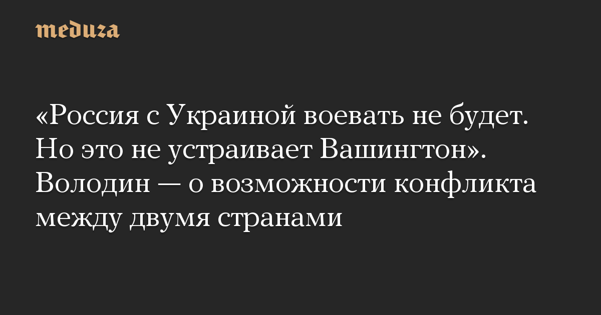 Спикер Госдумы Вячеслав Володин заявил, что «Россия с Украиной воевать не будет», но это «не устраивает Вашингтон, который делает все, чтобы столкнуть друг с другом наши государства».
