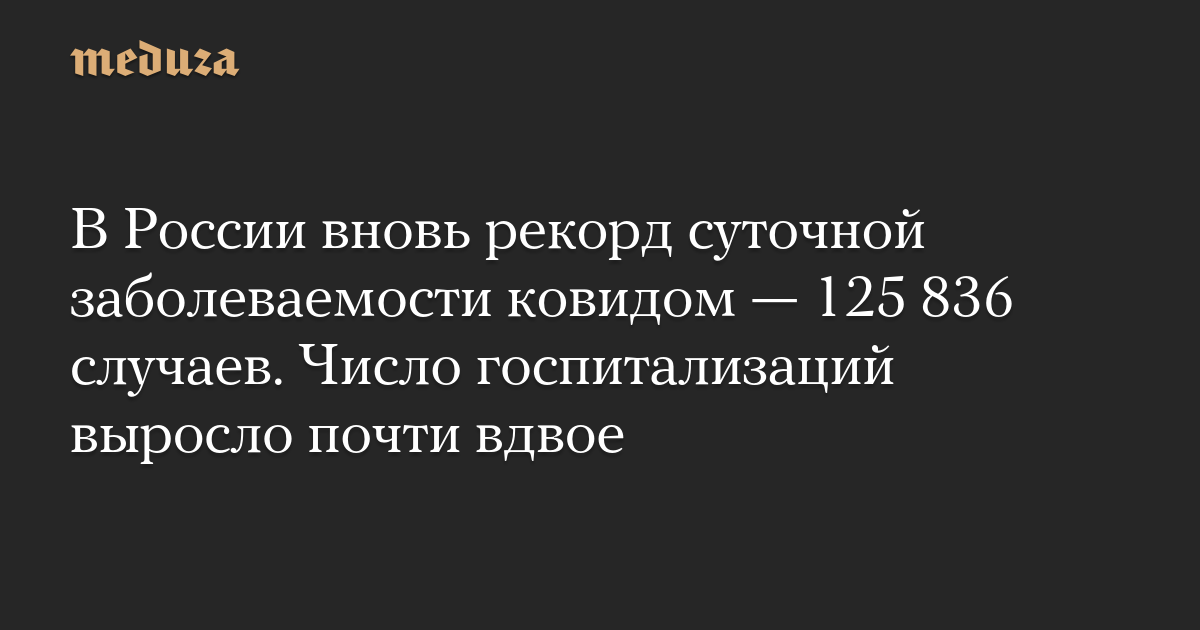 В России вновь рекорд суточной заболеваемости ковидом — 125 836 случаев. Число госпитализаций выросло почти вдвое