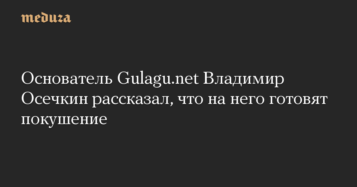 Основатель Gulagu.net Владимир Осечкин рассказал, что на него готовят покушение
