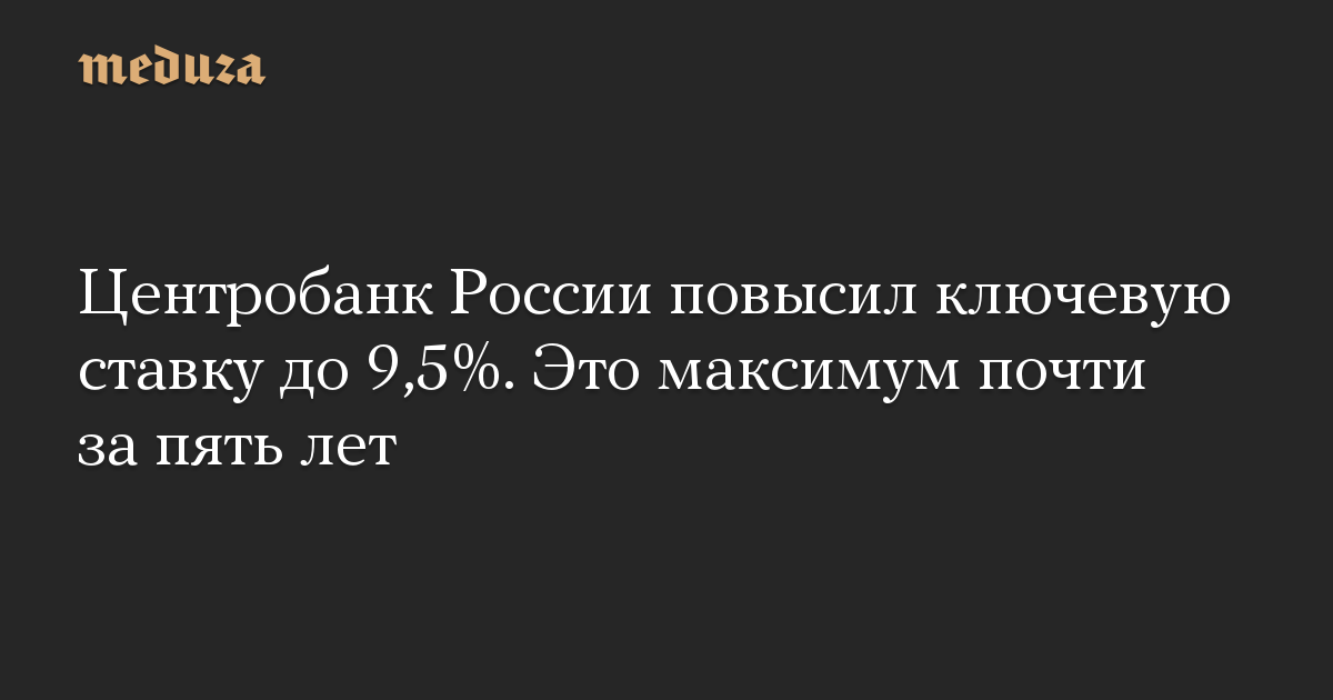 Центробанк России повысил ключевую ставку до 9,5%. Это максимум почти за пять лет