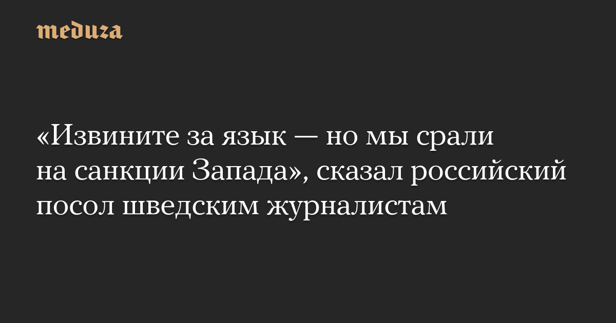 «Извините за язык — но мы срали на санкции Запада», сказал российский посол шведским журналистам