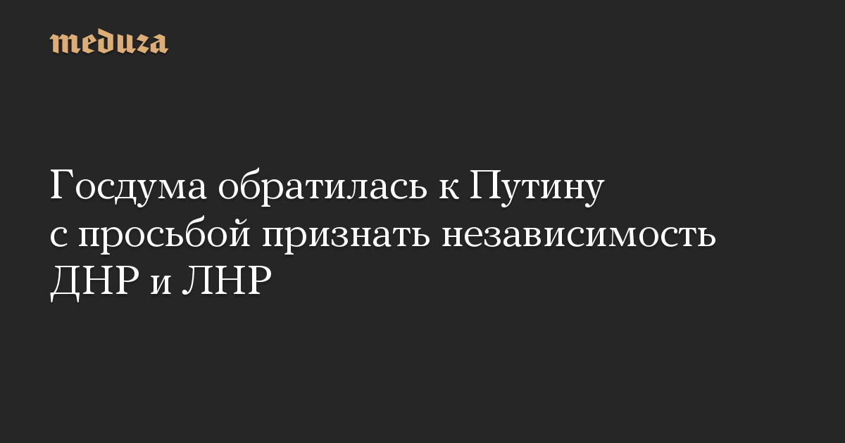 Госдума обратилась к Путину с просьбой признать независимость ДНР и ЛНР