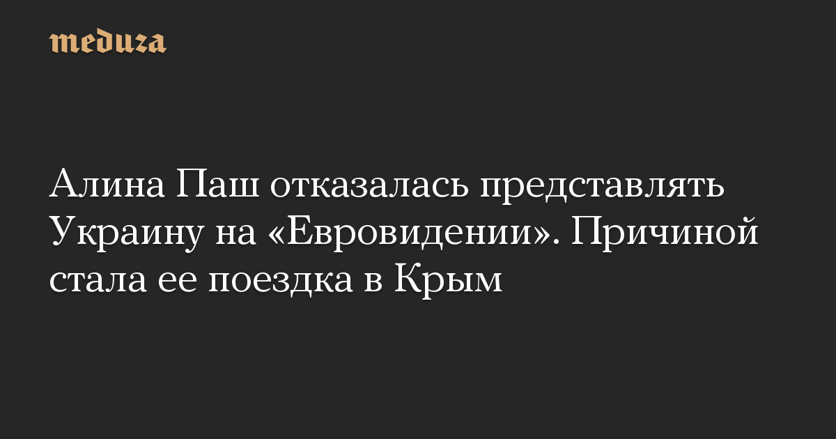 Украинская певица Алина Паш, победившая в национальном отборе на «Евровидение — 2022» от Украины, отказалась представлять страну на конкурсе. Об этом она заявила в своем инстаграме.