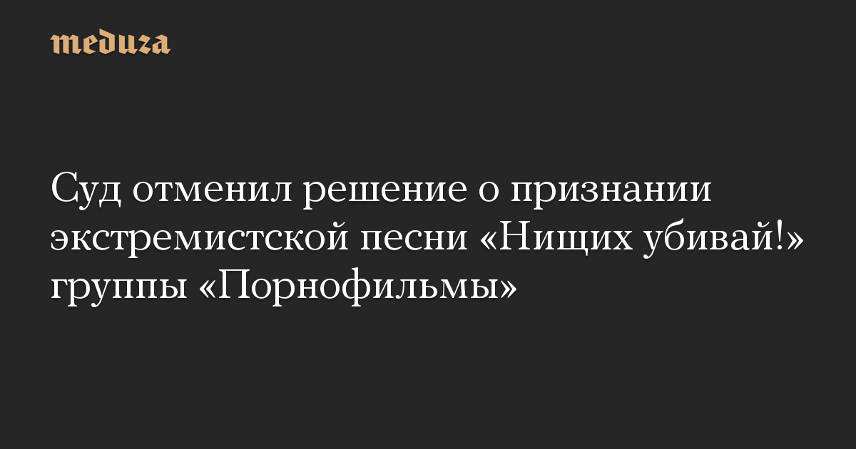 Волгоградский областной суд отменил решение о включении песни «Нищих убивай!» группы «Порнофильмы» в список экстремистских материалов, сообщает проект «Сетевые свободы».