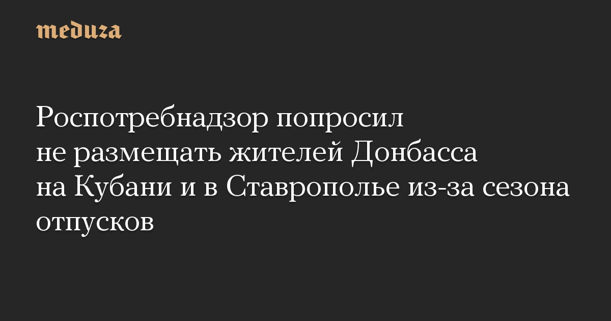 Роспотребнадзор попросил не размещать жителей Донбасса на Кубани и в Ставрополье из-за сезона отпусков