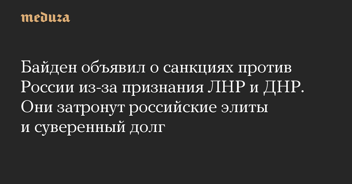 Байден объявил о санкциях против России из-за признания ЛНР и ДНР. Они затронут российские элиты и суверенный долг