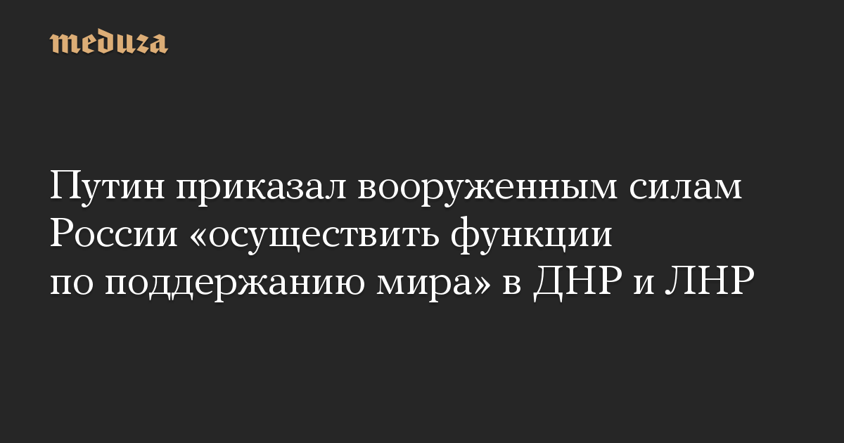 Путин приказал вооруженным силам России «осуществить функции по поддержанию мира» в ДНР и ЛНР