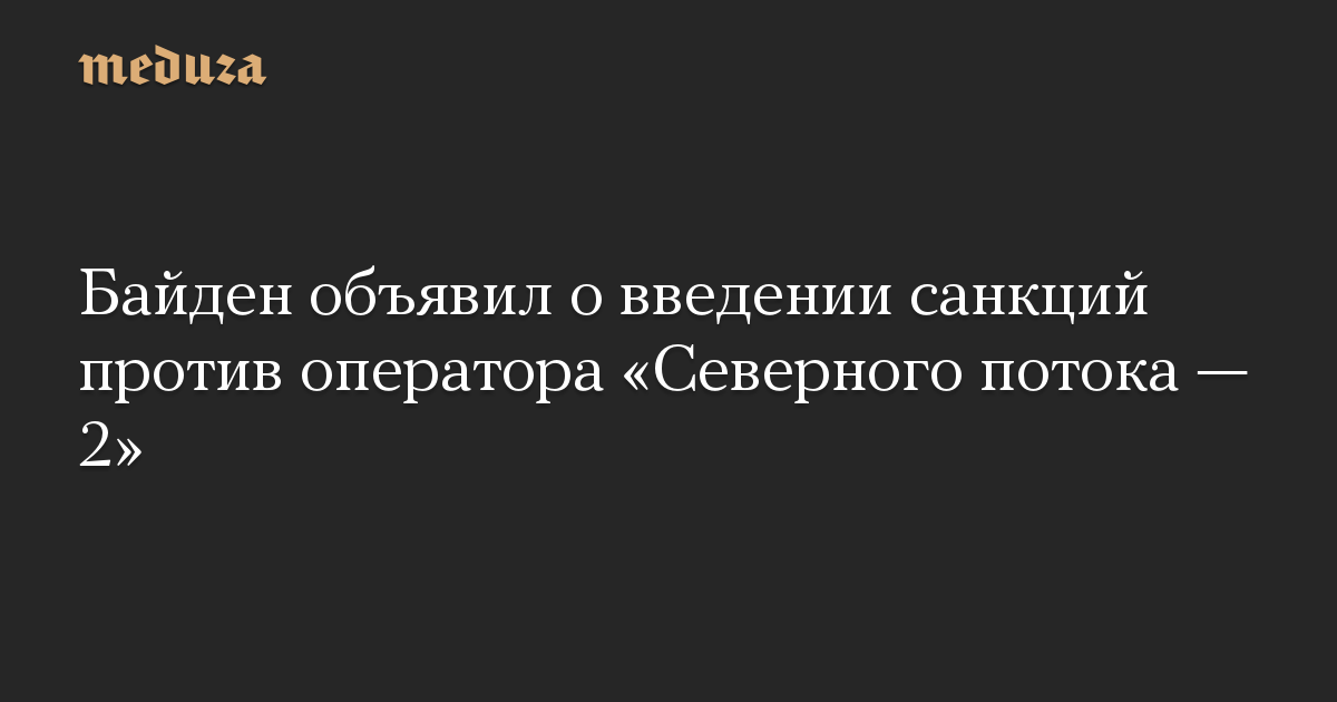 Байден объявил о введении санкций против оператора «Северного потока — 2»