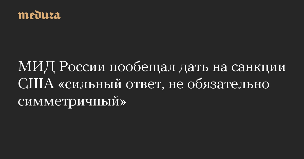 МИД России пообещал дать на санкции США «сильный ответ, не обязательно симметричный»