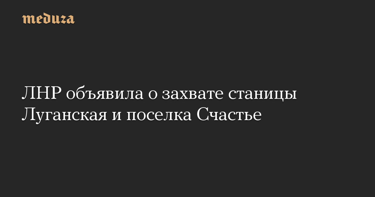 Военные самопровозглашенной Луганской народной республики взяли под свой контроль поселок Счастье и станицу Луганская, сообщает «Интерфакс» со ссылкой на советника главы МВД республики Виталия Киселева.