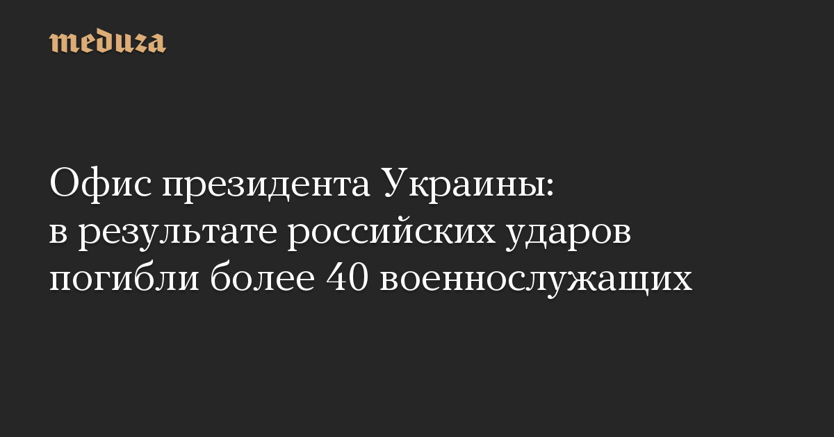 Офис президента Украины: в результате российских ударов погибли более 40 военнослужащих