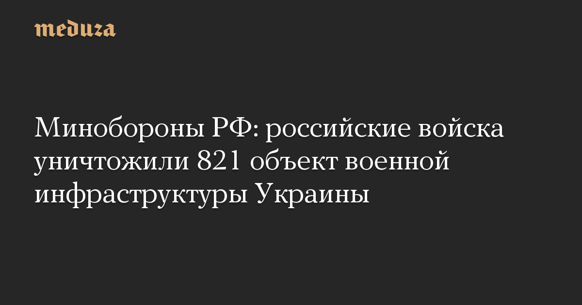 Минобороны РФ: российские войска уничтожили 821 объект военной инфраструктуры Украины