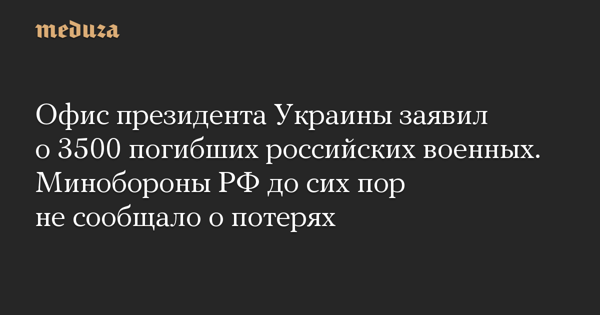 Офис президента Украины заявил о 3500 погибших российских военных. Минобороны РФ до сих пор не сообщало о потерях