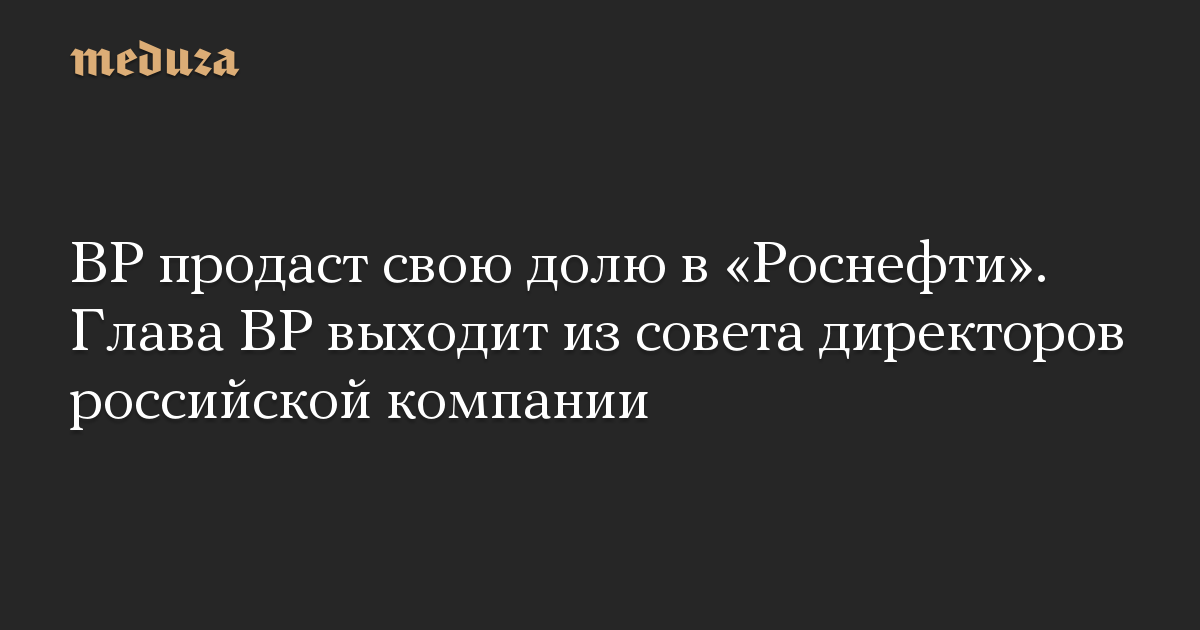 BP продаст свою долю в «Роснефти». Глава BP выходит из совета директоров российской компании