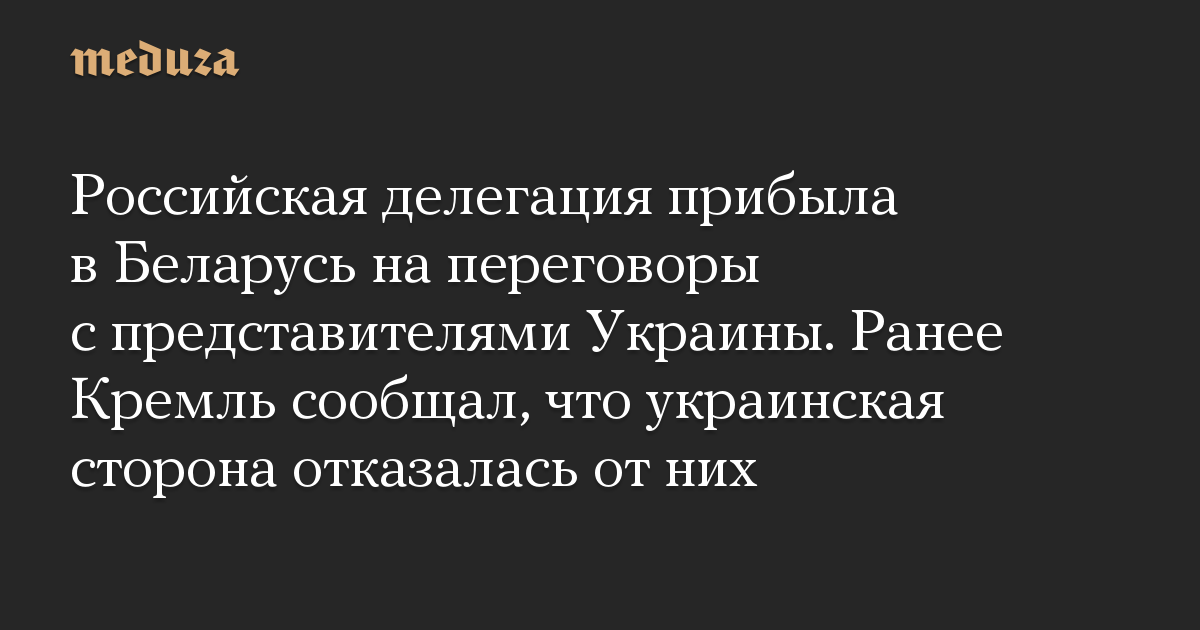 «В соответствии с достигнутой договоренностью, российская делегация, состоящая из представителей МИД, Минобороны и других ведомств, включая администрацию президента, прибыла в Белоруссию для переговоров с украинцами. Будем готовы начать эти переговоры в Гомеле», — сказал Песков.