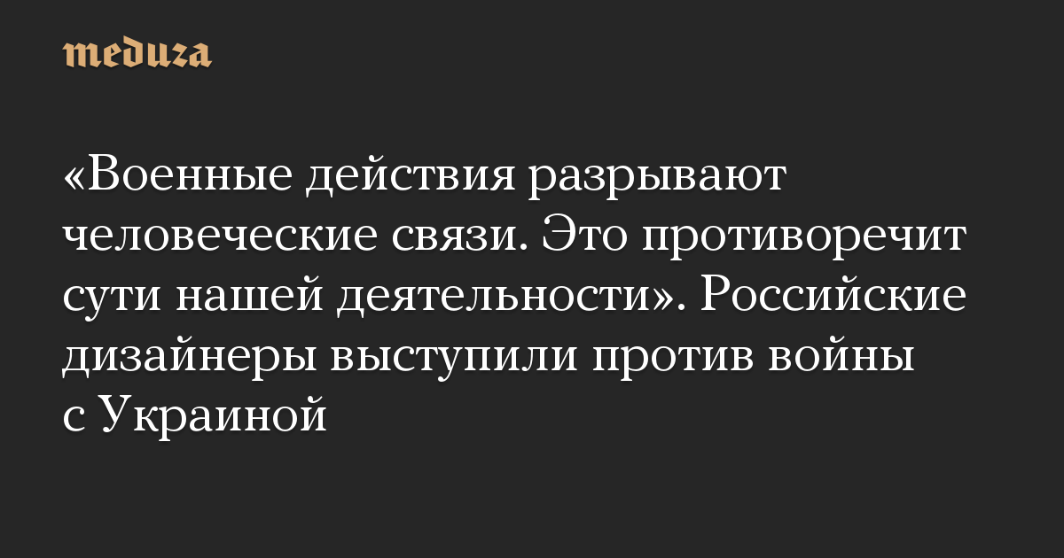 «Военные действия разрывают человеческие связи. Это противоречит сути нашей деятельности». Российские дизайнеры выступили против войны с Украиной