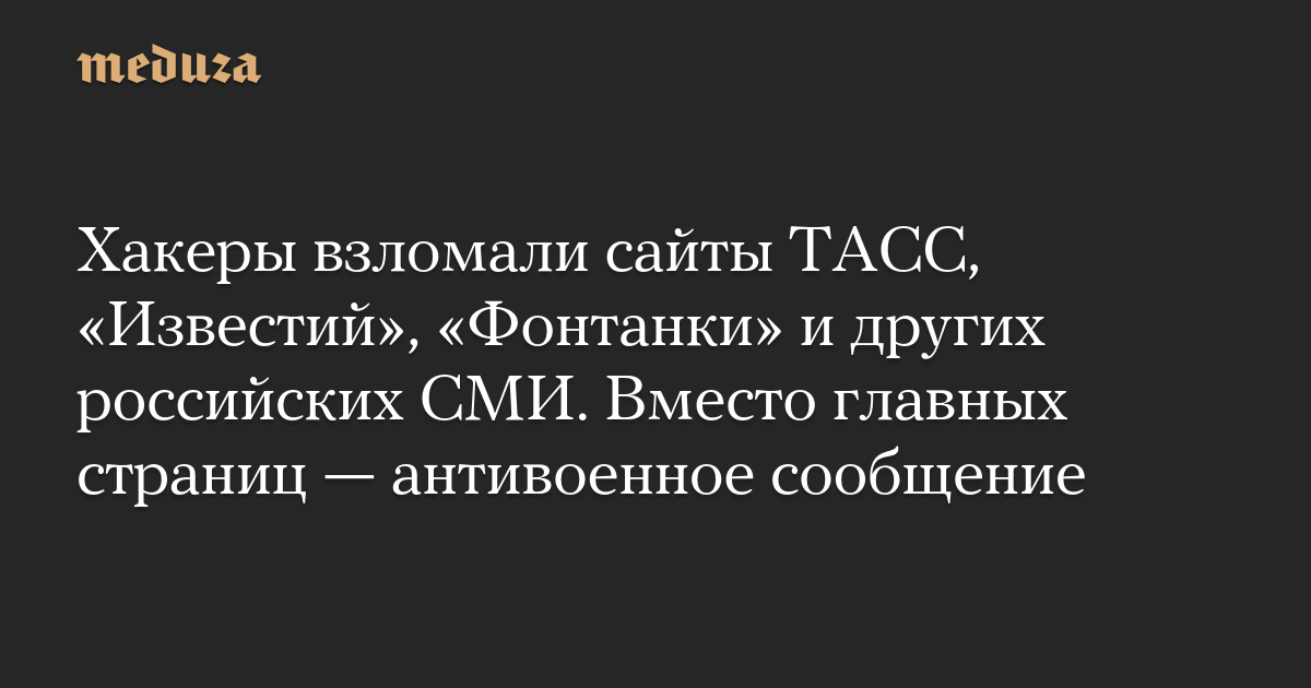 Хакеры взломали сайты ТАСС, «Известий», «Фонтанки» и других российских СМИ. Вместо главных страниц — антивоенное сообщение