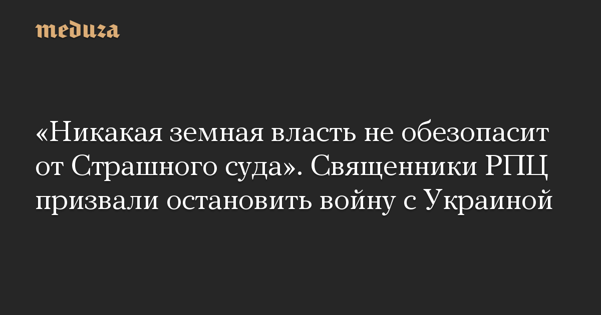 «Никакая земная власть не обезопасит от Страшного суда». Священники РПЦ призвали остановить войну с Украиной
