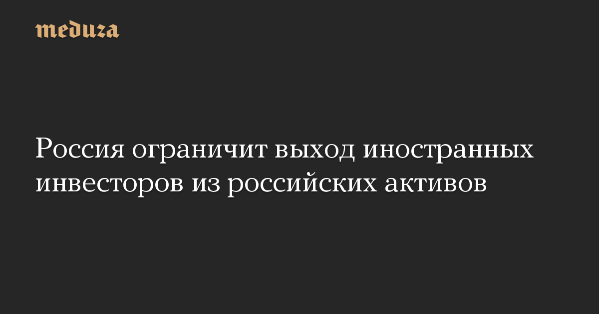 Россия временно ограничит выход иностранных инвесторов из российских активов. Проект указа президента РФ об этом уже подготовлен, сообщил премьер-министр Михаил Мишустин на совещании правительства о мерах поддержки экономики на фоне санкций.