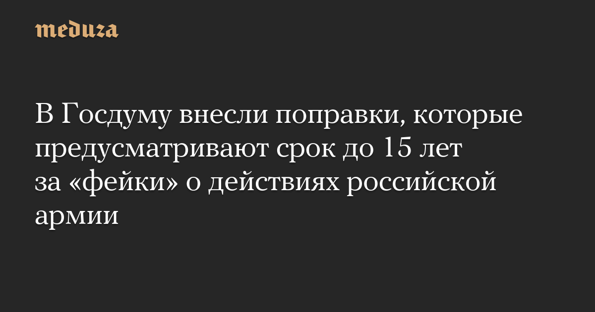 В Госдуму внесли поправки, которые предусматривают срок до 15 лет за «фейки» о действиях российской армии
