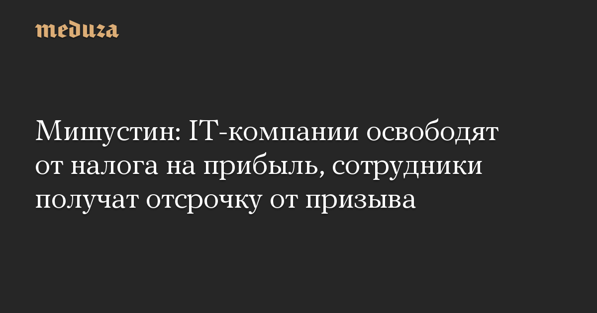 Мишустин: IT-компании освободят от налога на прибыль, сотрудники получат отсрочку от призыва