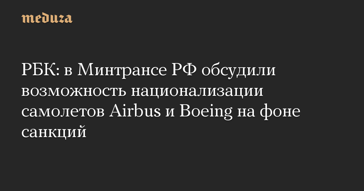 Замминистра транспорта РФ Игорь Чалик, топ-менеджеры группы «Аэрофлот», S7 Group, «Уральских авиалиний» и Utair обсудили возможность национализации самолетов Airbus и Boeing на фоне западных санкций, введенных из-за российского вторжения в Украину. Об этом РБК рассказали источники, знакомые с ходом совещания, которое состоялось 28 февраля.