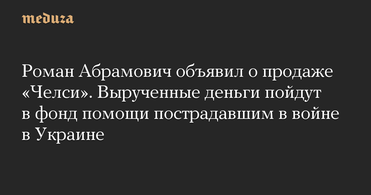 Абрамович заявил, что деньги, вырученные от продажи клуба, пойдут в благотворительный фонд, который будет учрежден для помощи пострадавшим в войне в Украине.