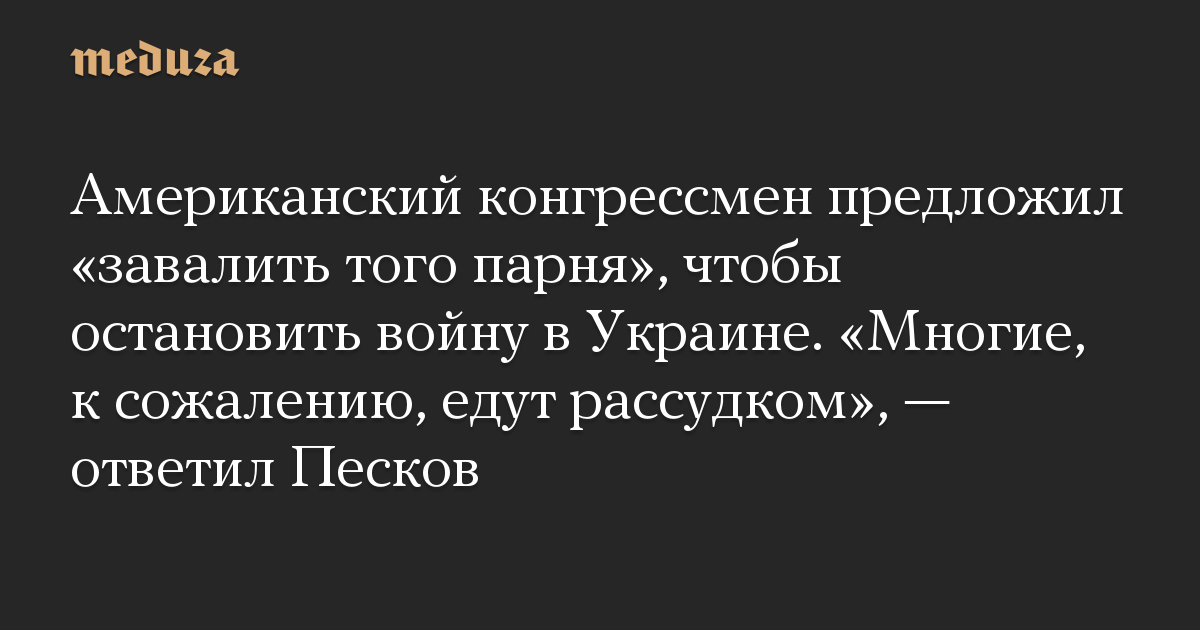 Американский конгрессмен предложил «завалить того парня», чтобы остановить войну в Украине. «Многие, к сожалению, едут рассудком», — ответил Песков