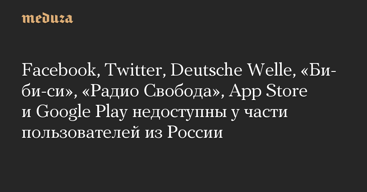 Facebook, Twitter, Deutsche Welle, «Би-би-си», «Радио Свобода», App Store и Google Play недоступны у части пользователей из России