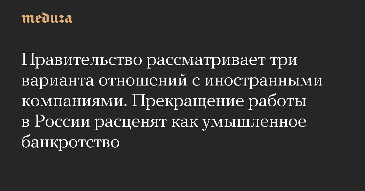 Правительство рассматривает три варианта отношений с иностранными компаниями. Прекращение работы в России расценят как умышленное банкротство