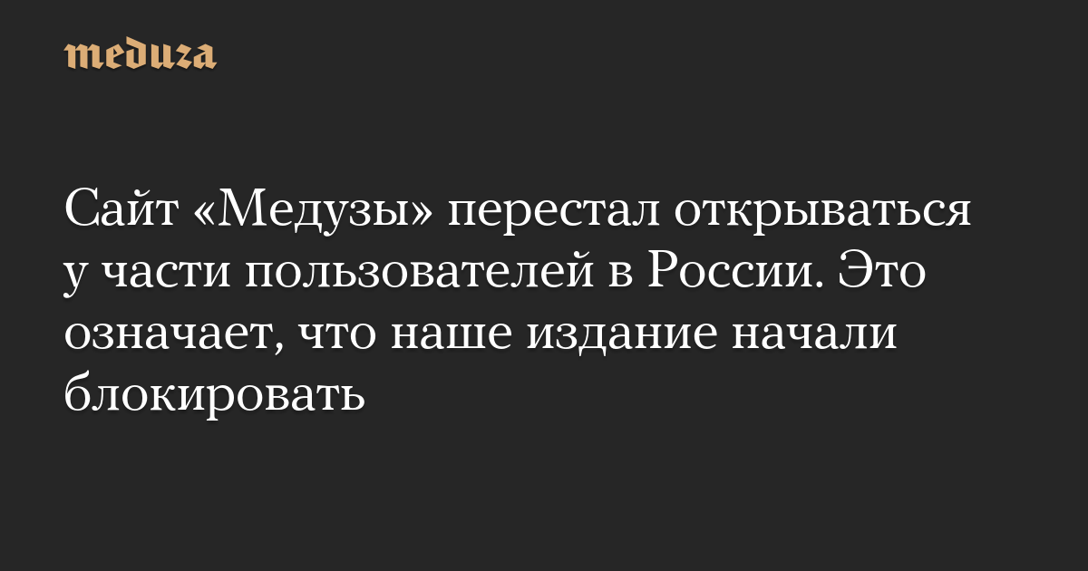 Сайт «Медузы» перестал открываться у части пользователей в России. Это означает, что наше издание начали блокировать