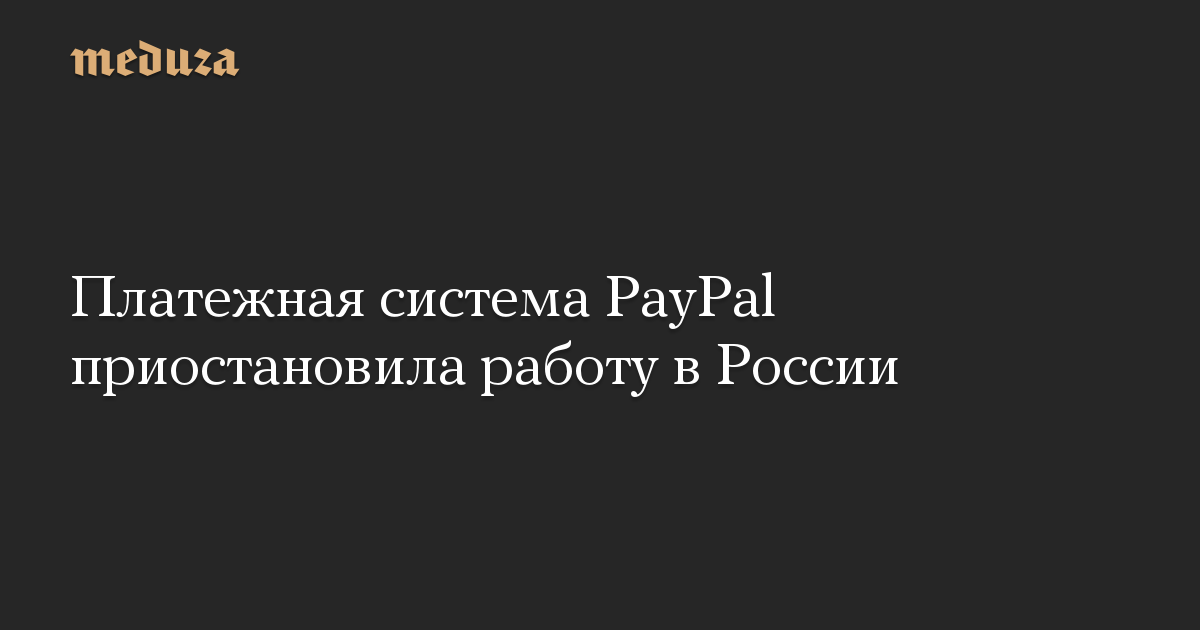 Электронная платежная система PayPal приостанавливает работу сервиса в России на фоне войны в Украине. Об этом сообщает Reuters со ссылкой на заявление президента компании Дэна Шульмана.