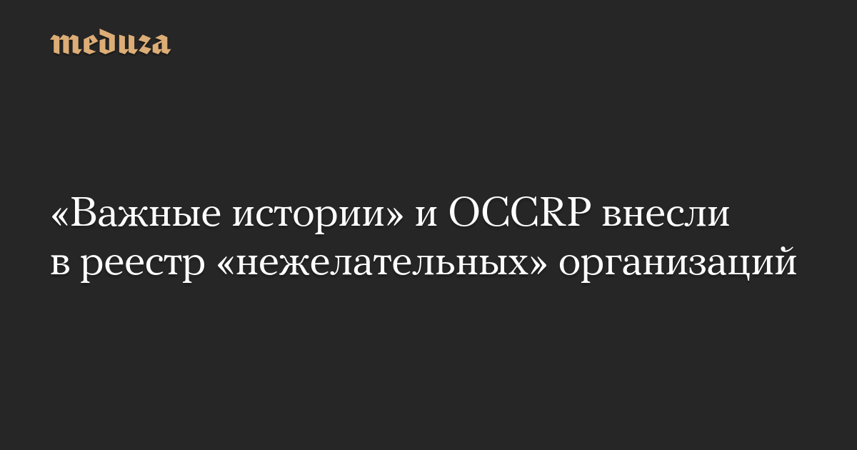 Минюст России внес в реестр «нежелательных» организаций издание «Важные истории» и международное объединение журналистов-расследователей OCCRP. Об этом сообщает «Медиазона».
