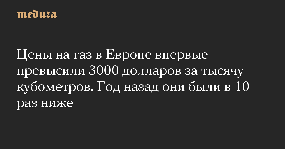 Цены на газ в Европе впервые превысили 3000 долларов за тысячу кубометров. Год назад они были в 10 раз ниже