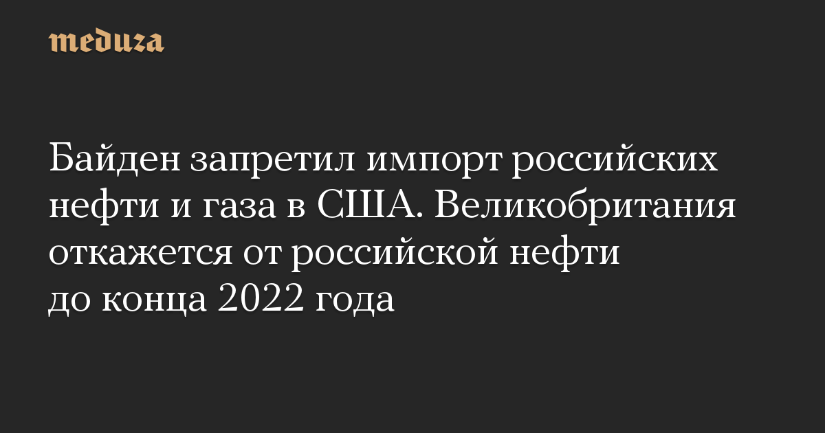 Байден запретил импорт российских нефти и газа в США. Великобритания откажется от российской нефти до конца 2022 года