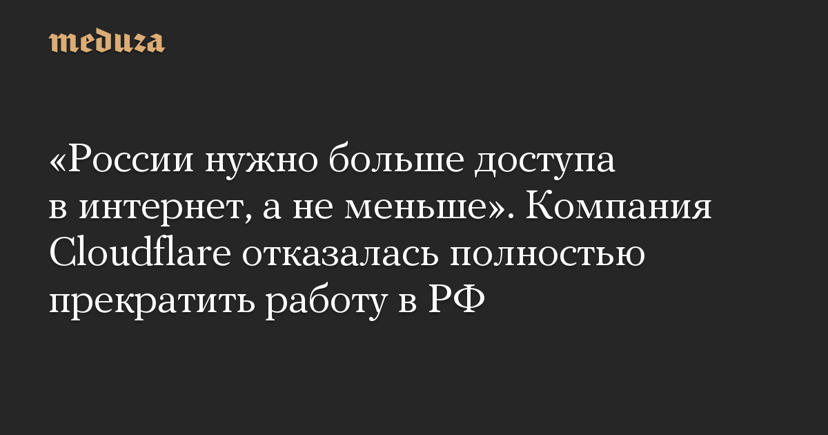 «России нужно больше доступа в интернет, а не меньше». Компания Cloudflare отказалась полностью прекратить работу в РФ