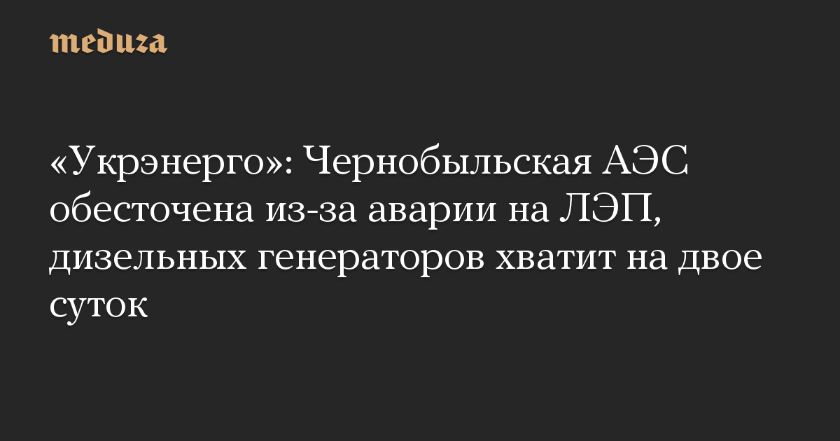 «Укрэнерго»: Чернобыльская АЭС обесточена из-за аварии на ЛЭП, дизельных генераторов хватит на двое суток