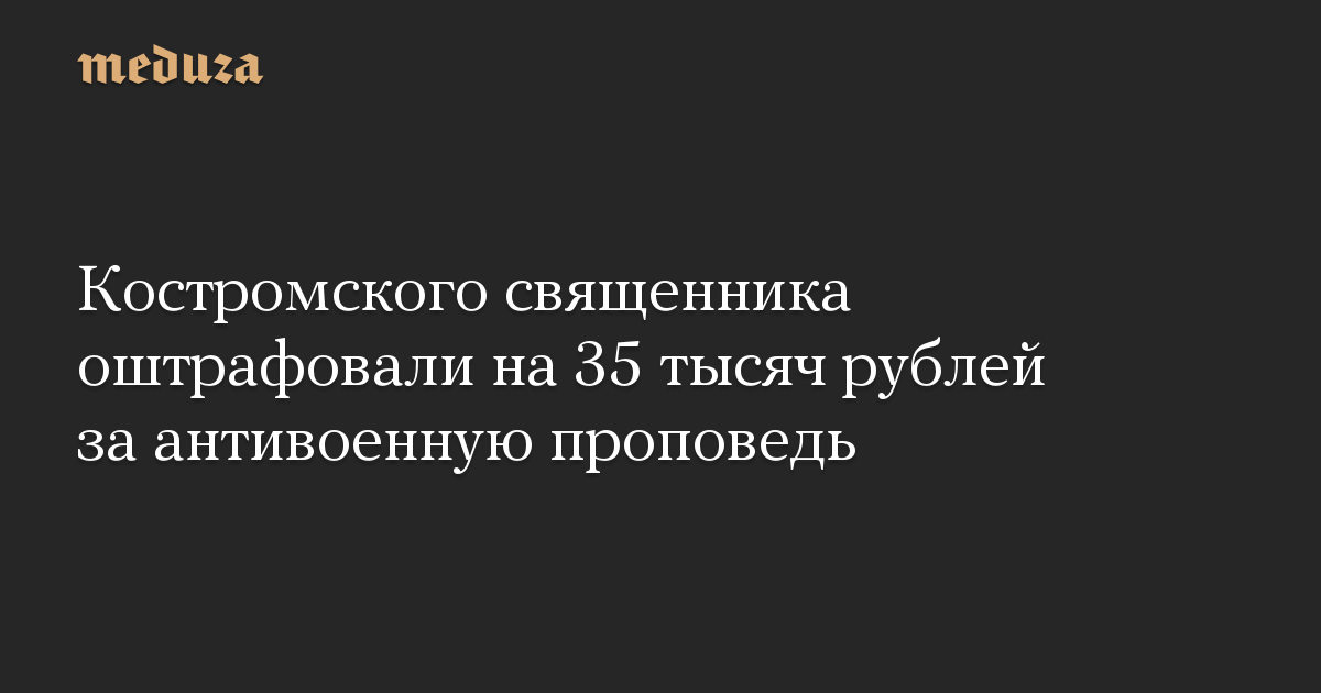 Костромского священника оштрафовали на 35 тысяч рублей за антивоенную проповедь