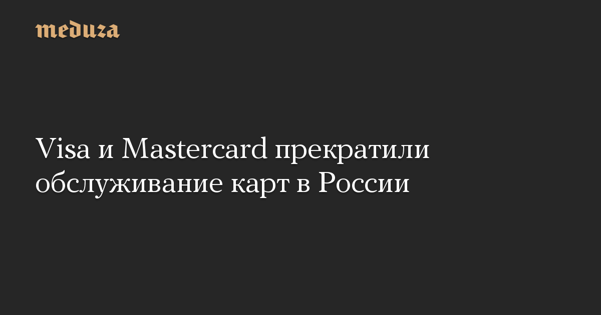 Платежная система Mastercard также приостановила работу в России, отмечает ТАСС. Ранее обе компании заявили, что вынуждены пойти на этот шаг на фоне российского вторжения в Украину.