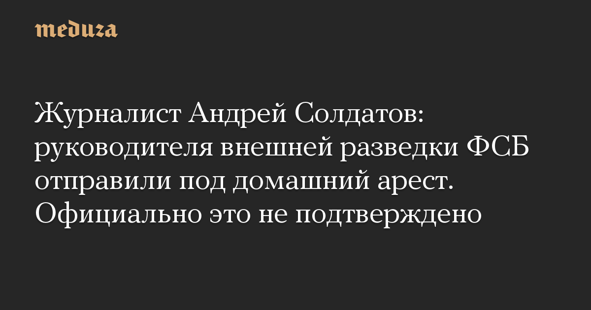 Журналист Андрей Солдатов: руководителя внешней разведки ФСБ отправили под домашний арест. Официально это не подтверждено