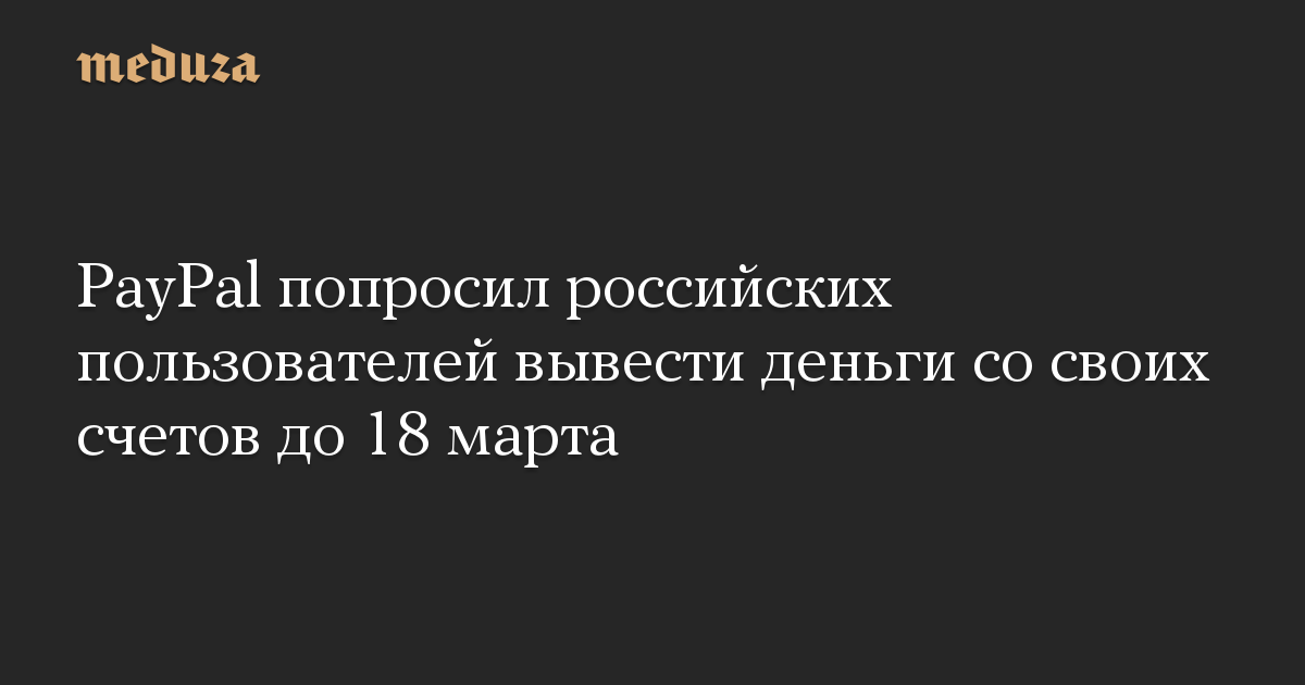 PayPal сообщил о приостановке работы в России 5 марта в связи с российским вторжением в Украину. Тогда руководство компании пообещало дать российским пользователям время, чтобы снять средства со счетов.