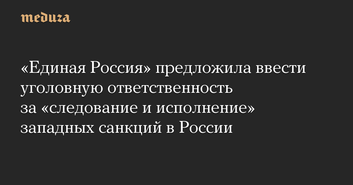 «Единая Россия» предложила ввести уголовную ответственность за «следование и исполнение» западных санкций в России