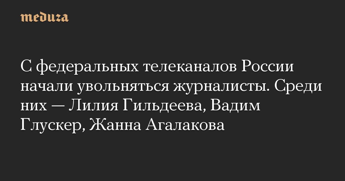 С федеральных телеканалов России начали увольняться журналисты. Среди них — Лилия Гильдеева, Вадим Глускер, Жанна Агалакова