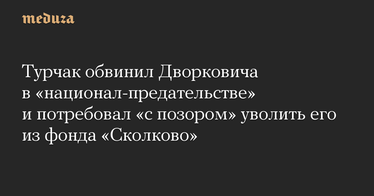 Турчак обвинил Дворковича в «национал-предательстве» и потребовал «с позором» уволить его из фонда «Сколково»