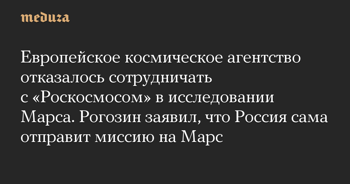 Европейское космическое агентство отказалось сотрудничать с «Роскосмосом» в исследовании Марса. Рогозин заявил, что Россия сама отправит миссию на Марс
