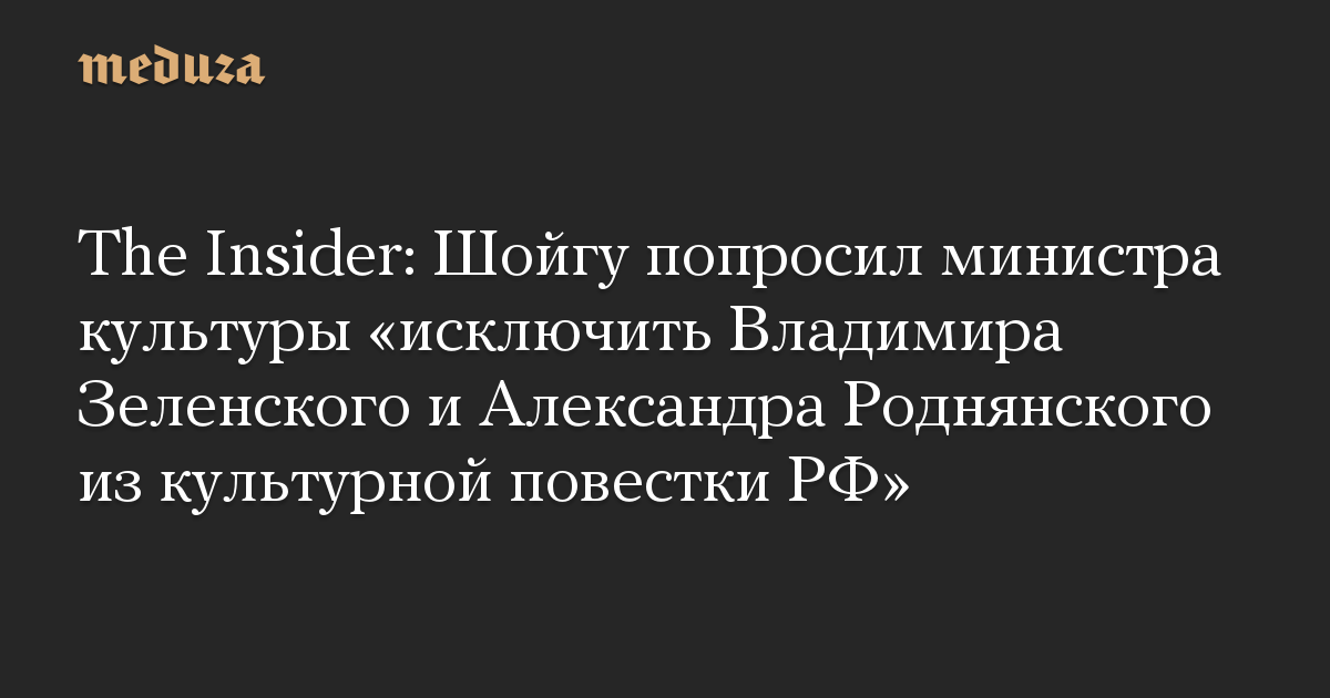 The Insider: Шойгу попросил министра культуры «исключить Владимира Зеленского и Александра Роднянского из культурной повестки РФ»