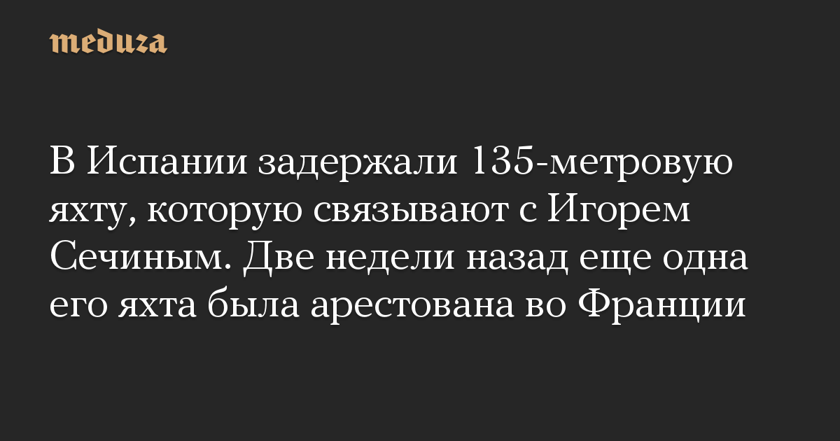 В Испании задержали 135-метровую яхту, которую связывают с Игорем Сечиным. Две недели назад еще одна его яхта была арестована во Франции