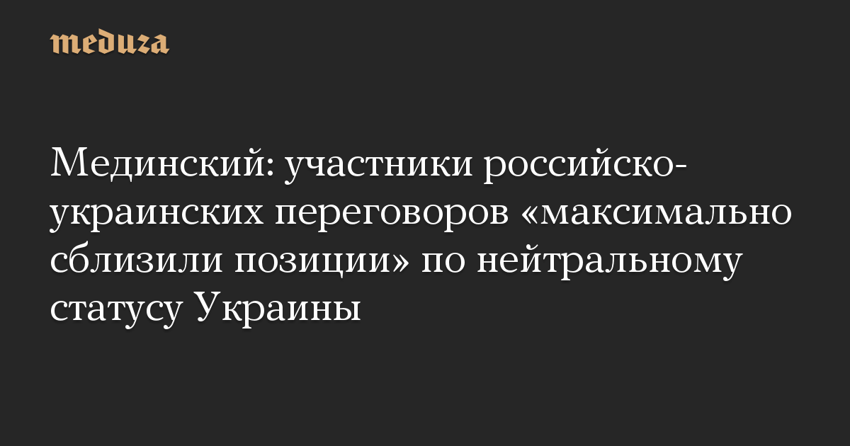 Мединский: участники российско-украинских переговоров «максимально сблизили позиции» по нейтральному статусу Украины