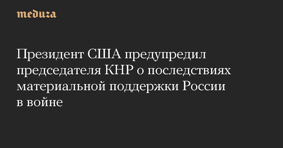 Президент США предупредил председателя КНР о последствиях материальной поддержки России в войне