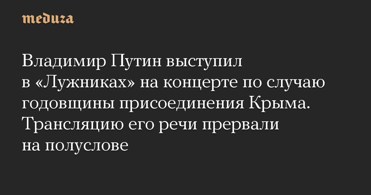 Владимир Путин выступил в «Лужниках» на концерте по случаю годовщины присоединения Крыма. Трансляцию его речи прервали на полуслове